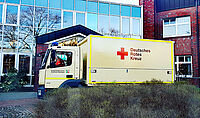 DRK – Einsatzeinheit richtet Gebäude der LWL-Klinik für den Einsatz ein.